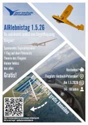Ganz im Zeichen der Nachwuchsgewinnung steht auch der 1. Mai. Beim sogenannten „Airlebnistag“ lädt der Verein interessierte Jugendliche im Alter von 14 bis 18 Jahren ein, selbst ins Cockpit eines Segelflugzeugs zu steigen. Neben ersten praktischen Erfahrungen erwartet die Teilnehmer ein Einblick in die Theorie des Fliegens, die Gemeinschaft im Verein sowie ein kleiner Imbiss.