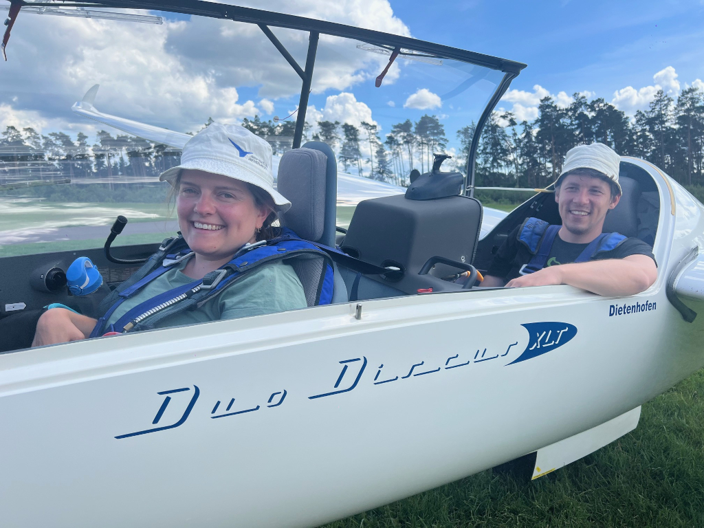 Dr. Wolfgang Müller mit Copilot Vincent Rittner wagten es mit Erfolg vor den Gewittern ihren Flug bis in den Thüringer Wald zu strecken.