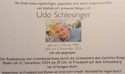 wir haben die traurige Mitteilung erhalten, dass unser langjähriges Mitglied Udo Schlesinger im Alter von 84 Jahren verstorben ist.