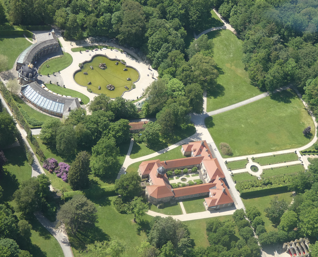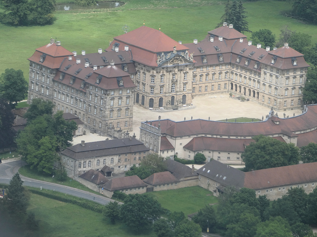 Auf unserer Dreiecksroute nach Bamberg und Bayreuth überflogen wir auf dem Weg nach Bamberg in Pommersfelden das Schloss Weißenstein, kurz vor Bamberg noch die Altenburg und etwas weiter nördöstlich in Memmelsdorf dann das Schloss Seehof.