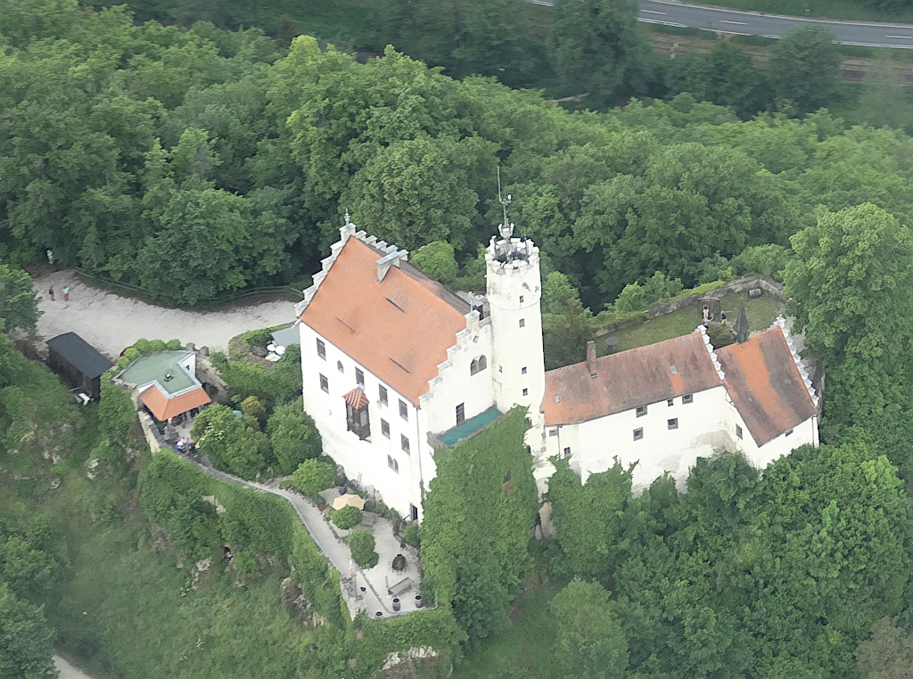 Am östlichen Rand des Bayreuther Talkessels konnten wir dann noch die Eremitage aus der Vogelperspektive bewundern, und bei unserem Flug zurück zum Flugplatz Ansbach Petersdorf lag noch Burg Gößweinstein auf unserem Weg.